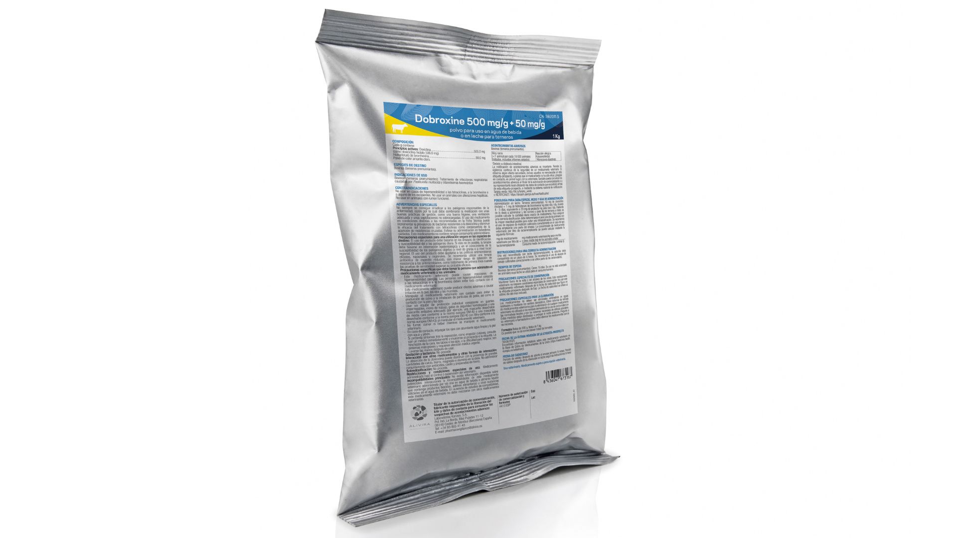 Dobroxine se administra en leche a terneros prerrumiantes a la dosis de 20 mg/kg pv/día durante 4-5 días. Está disponible en bolsas de 1 kg.