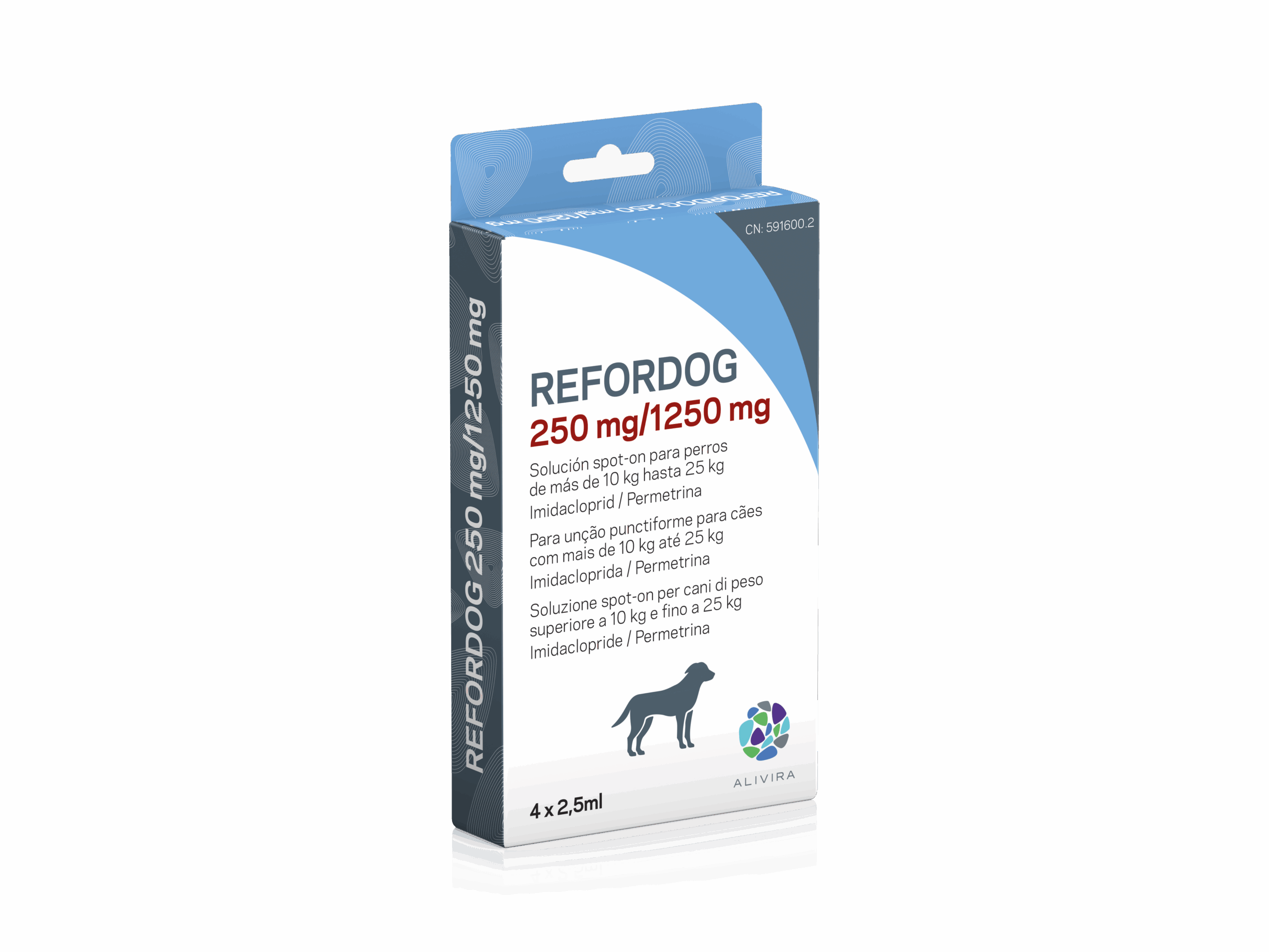 Envase conteniendo 4 pipetas de 2,5 ml.